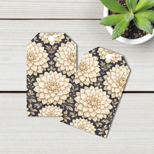 12 X Ivory Flowers Gift Tags, Gift Wrapping, Luggage Tags, Card Making
