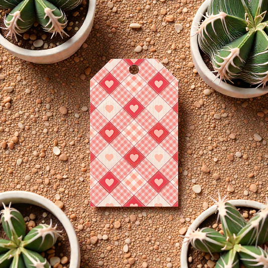 12 X Pink Checkered Hearts Gift Tags, Gift Wrapping, Luggage Tags, Card Making