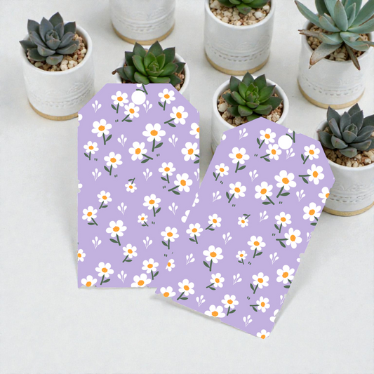 12 X Purple Dasiy Gift Tags, Gift Wrapping, Luggage Tags, Card Making